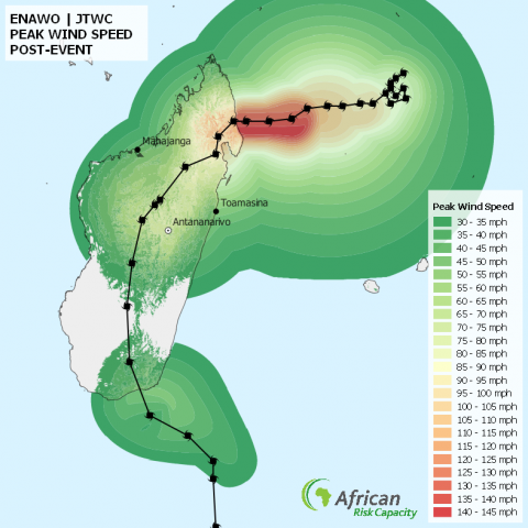 [box type="shadow" class="" width="" background=#000000]The African Risk Capacity monitors tropical cyclone activity in the South-West Indian Ocean (SWIO) and relies on Africa RiskView, a disaster risk modelling platform that uses satellite-based and other geo-information to forecast wind speed and storm surge height and estimate population affected and economic loss. These modelled losses are the underlying basis of the insurance policies issued by the ARC Insurance Company Limited, the financial affiliate of the ARC Agency, which pools risk across the continent.[/box]